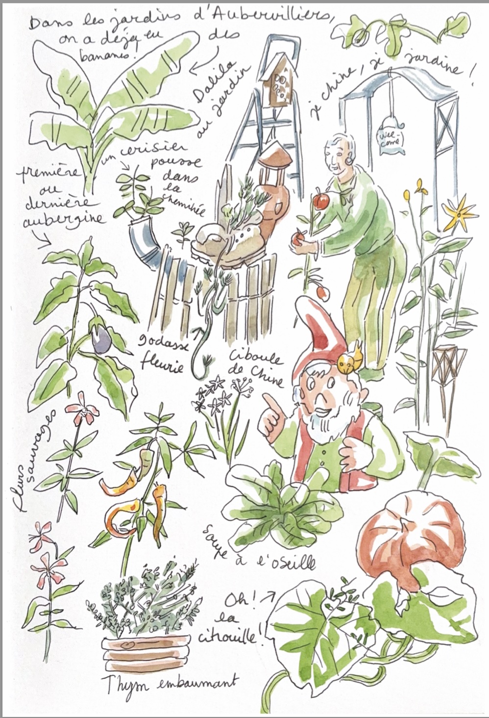 De son côté, venant de la ville, Dalila a tout appris dans les jardins familiaux, à soigner ses tomates comme à cultiver ses citrouilles, ses piments ou ses aubergines. Elle aime aussi mettre dans son potager les trouvailles qu’elle a chinées. Lorsqu’elle était malade, son mari lui apportait à l’hôpital, tous les jours pour ses repas, les légumes de son jardin. En somme, le jardin lui a sauvé la vie.