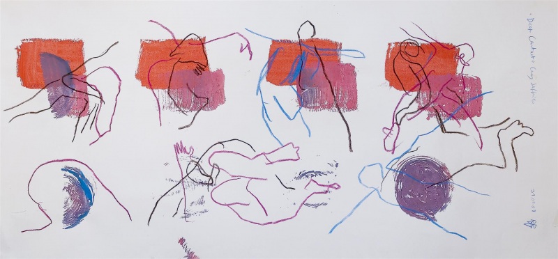 Raphaèle Bernard-Bacot has placed dance at the heart of her artistic explorations ever since her collaboration with choreographer Serge Ricci for the publication of her limited-edition artist’s book, “16 Figures”. She extends this experiment by following the creative processes inspired by well known choreographers: Boris Charmatz, Angelin Prejlokaj, Carolyn Carlson, Daniel Dobbels, Annie Vigier and Franck Appertet, Carey Jeffries, Françoise Jasmin, Christian and François Ben Aïm, Nathalie Pernette… The development of the dancers’ movements articulates that of the artist. This is a familiar process for Raphaèle Bernard-Bacot, who continues to juxtapose notions of the body with intersecting images in a wide variety of techniques and compositions. She witnesses the growing impact of dance in the contemporary art.