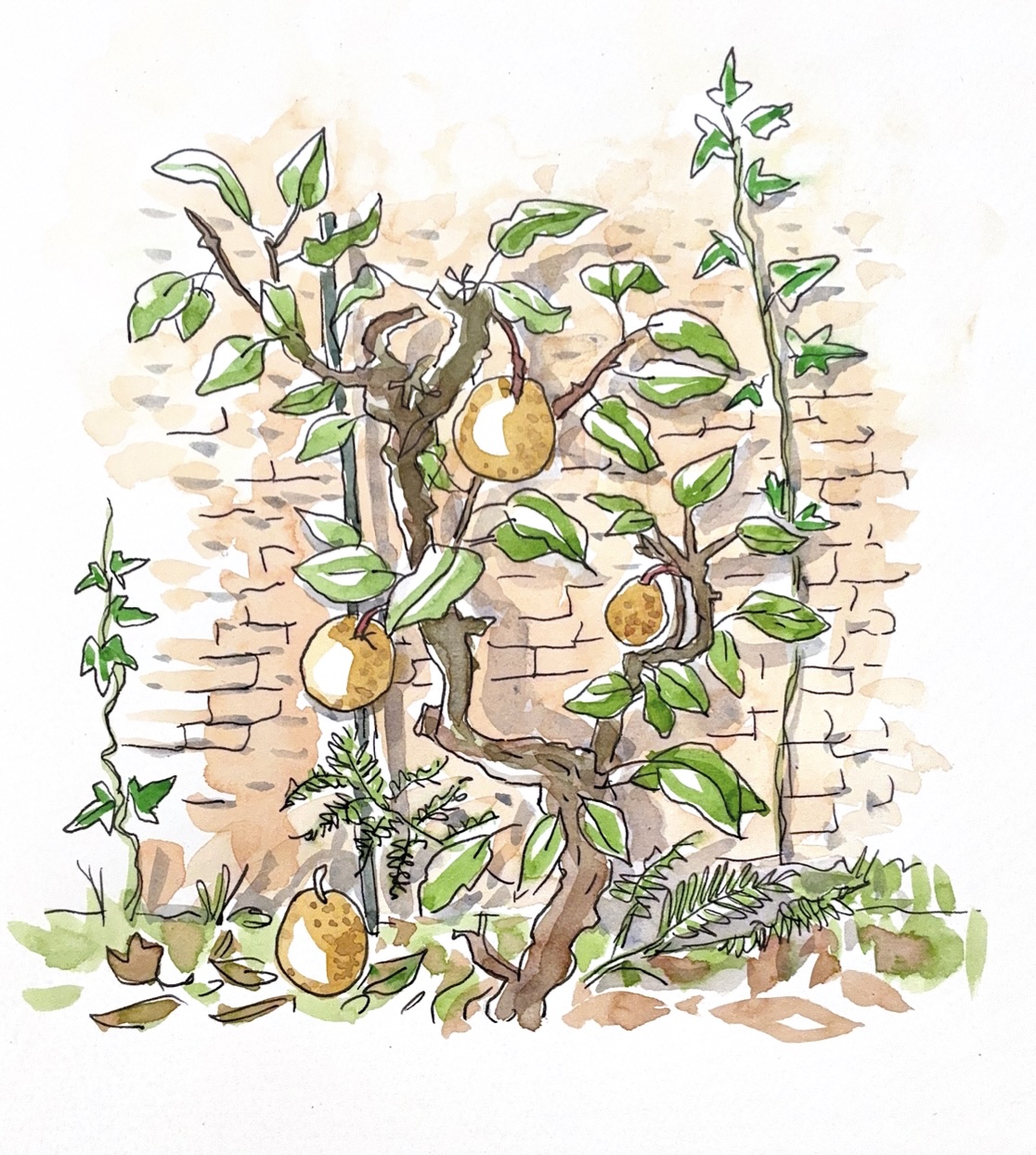 Mais n’oublions pas mon vieux nashi, petit arbre fruitier palissé dans mon jardin et qui nous vient d’Asie. D’ailleurs le mot “nashi” signifie simplement “poire” en japonais. Ses fruits sont plus juteux que les pommes, et plus croquants que les poires. Il a ainsi grandi gaillardement dans mon jardin alors que les enfants et moi, prenant ses fruits pour des poires tardives comme les passe-crassanes, les abandonnions sur leur rameau jusqu’en décembre dont ils finissaient par tomber de lassitude. Ce n’est que plus tard que j’ai appris que les nashis peuvent rester sur l’arbre tout en étant très mûrs. Redécouvert dans les années 80, le nashi séduit de plus en plus de jardiniers amateurs car il est rustique, productif et peu exigeant.